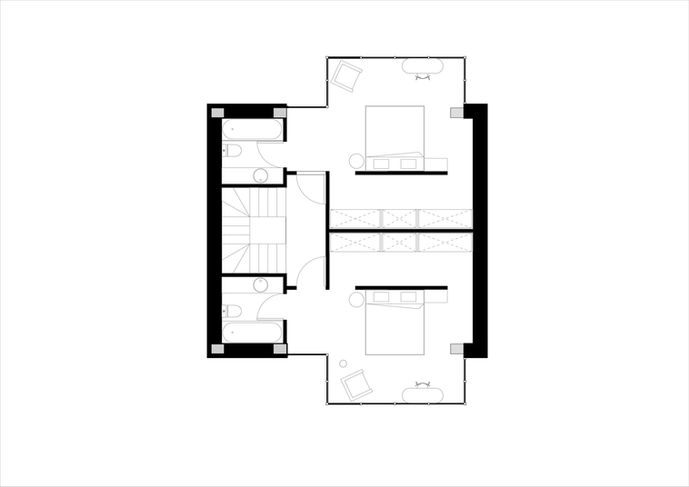 The project consist of four identical houses that differ in their finishing material. Each house has an outdoor sitting area that connects the entrance of the plot with the house entrance, and is divided into three levels - basment, first and second floors. The basement houses an entertainment room, the first floor has an open kitchen, living and dining areas, as well as an office/guest bedroom. The second floor houses two identical master bedrooms.